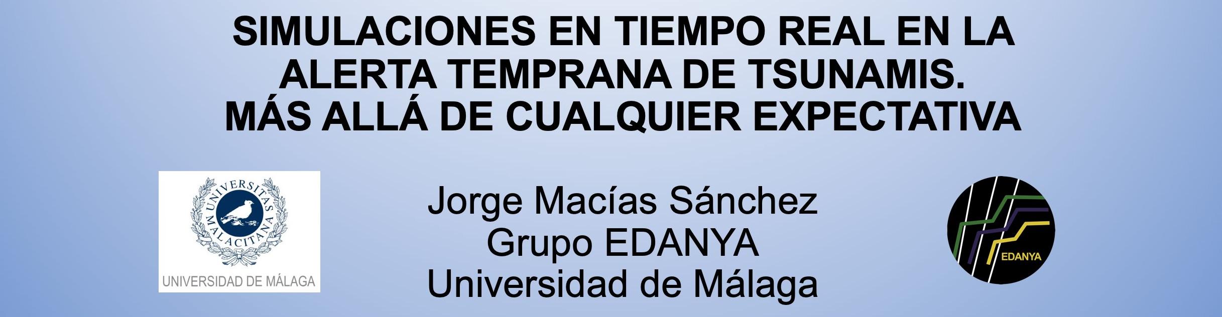 Jorge Macias (UMA) presents "Simulaciones en tiempo real en la alerta temprana de tsunamis. Mas alla de cualquier expectativa" (Real-time simulations in tsunami early warning. Beyond any expectation) at the UMA-organised event XV Jornadas Internacionales de Seguridad, Emergencia y Catástrofe. Retos Y Avances Tecnológicos on 17 June 2021.