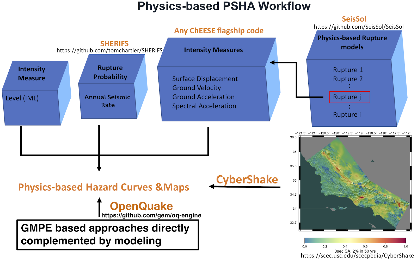 The softwares for the PSHA main workflow are open source codes and can be accessed using the above links. The PSHA results can be used for seismic hazard assessment.