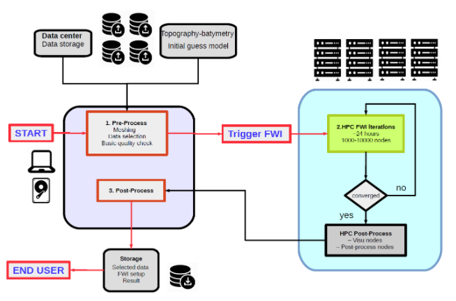 This general tomographic workflow was adapted for SPECFEM3D_FWI and SALVUS. |